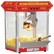 - 860-watt carnival-style tabletop popcorn popper with 8-ounce stainless-steel flip-lid kettle